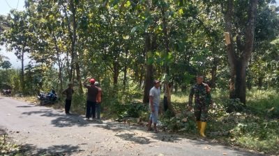 BABINSA KORAMIL 0810/05 SAWAHAN BERSAMA PERANGKAT DESA KERJA BAKTI BERSIHKAN KANTOR DESA BARENG