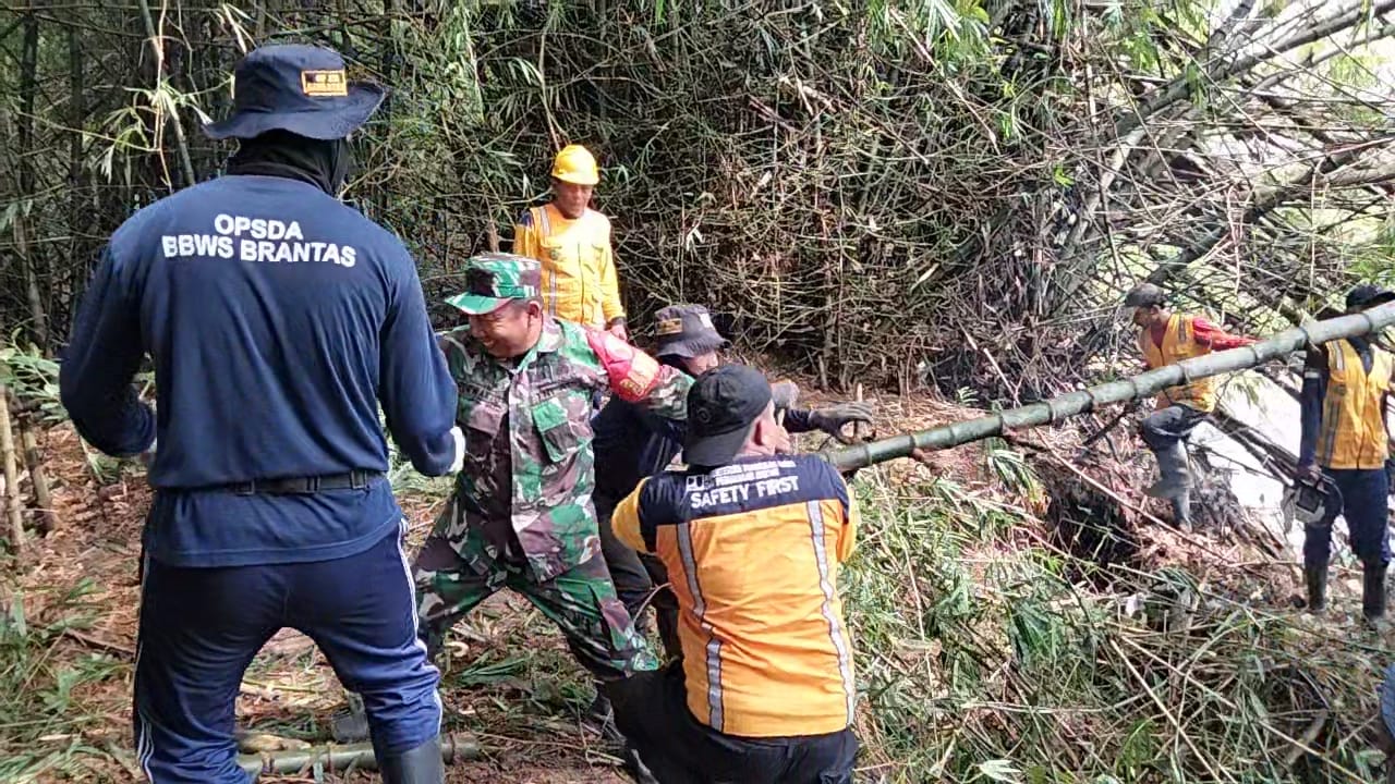 BABINSA KORAMIL 0810/02 BAGOR BERSAMA WARGA LAKSANAKAN KERJA BAKTI BERSIHKAN BAMBU DI SEPANJANG SUNGAI