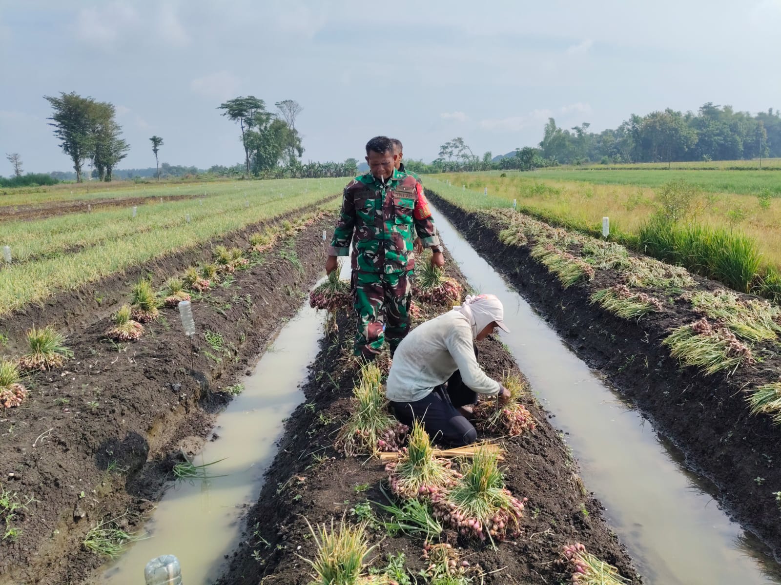 Sukomoro – Dalam rangka mempererat kemanunggalan TNI dengan rakyat, Serma Syaiful melaksanakan kegiatan Serbuan Teritorial (Serter) dengan membantu petani panen bawang merah di Desa Kedungsuko, Kecamatan Sukomoro.