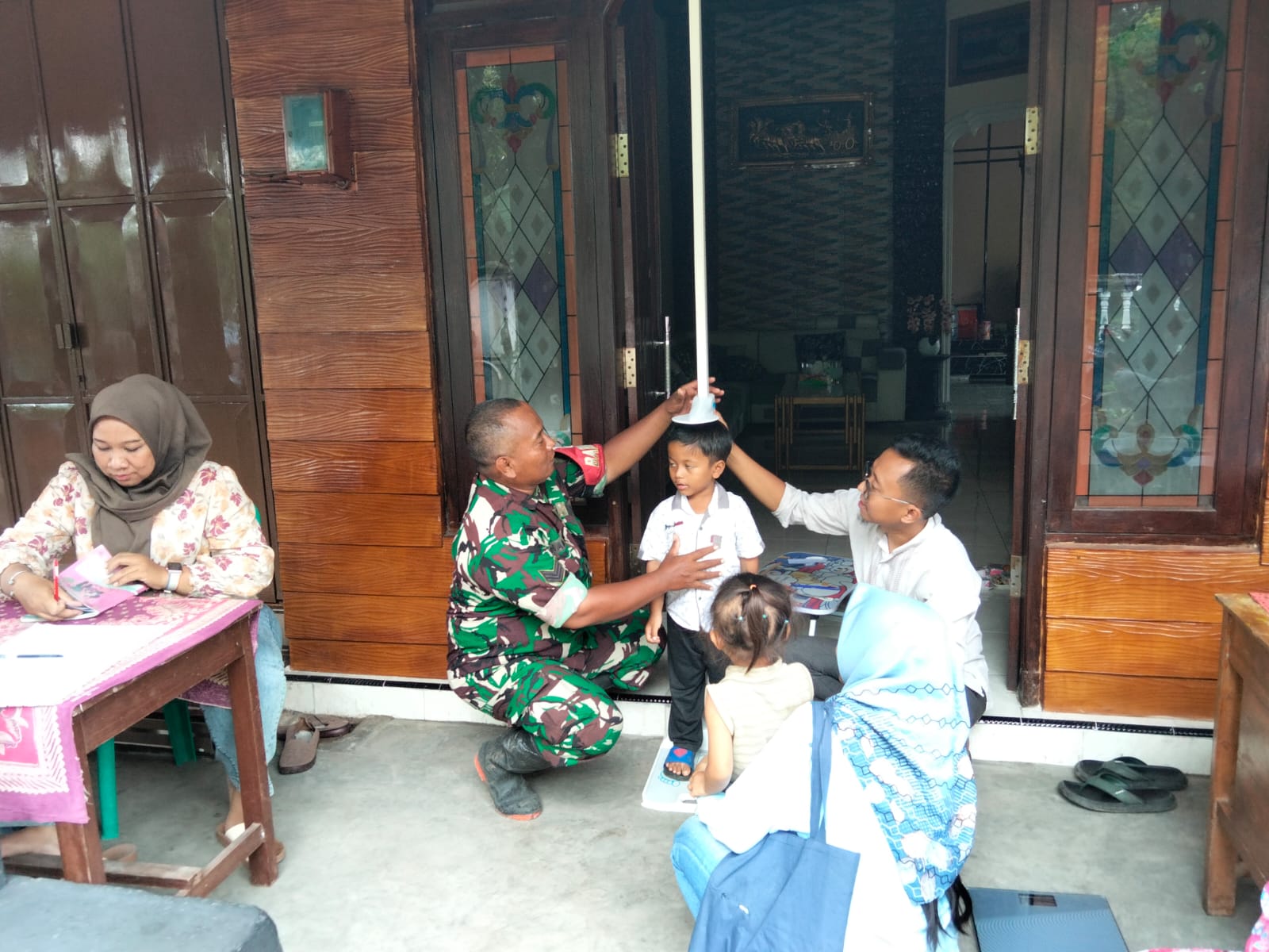 Guna menjaga Balita di wilayah binaannya tetap sehat, Babinsa Korami 0810/08 Baron Serka Imam mashudi mendampingi Posyandu Balita yang dilaksanakan petugas kesehatan dari Puskesmas Baron melalui bidan desa Baron Sabtu (28/3/2026).