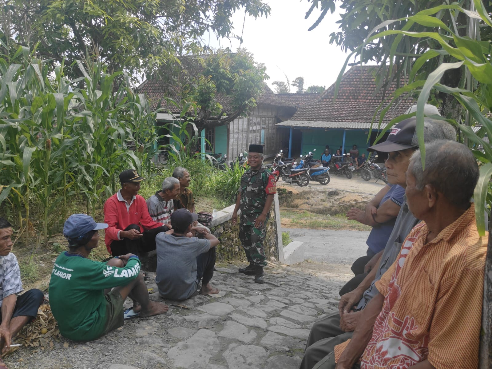 Dalam suasana santai dan penuh keakraban, Sertu Supriadi tampak berbaur bersama warga, duduk bersama sambil berdialog ringan terkait berbagai hal, mulai dari kondisi keamanan lingkungan, kegiatan sosial masyarakat, hingga perkembangan ekonomi warga setempat.