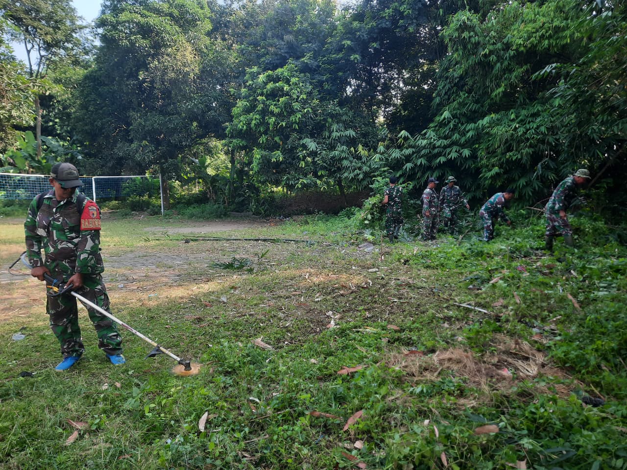 Semangat gotong royong terlihat jelas dalam kegiatan tersebut, di mana anggota TNI dan pihak sekolah bekerja sama dengan penuh kebersamaan demi menciptakan sarana latihan yang layak dan aman bagi para siswa.