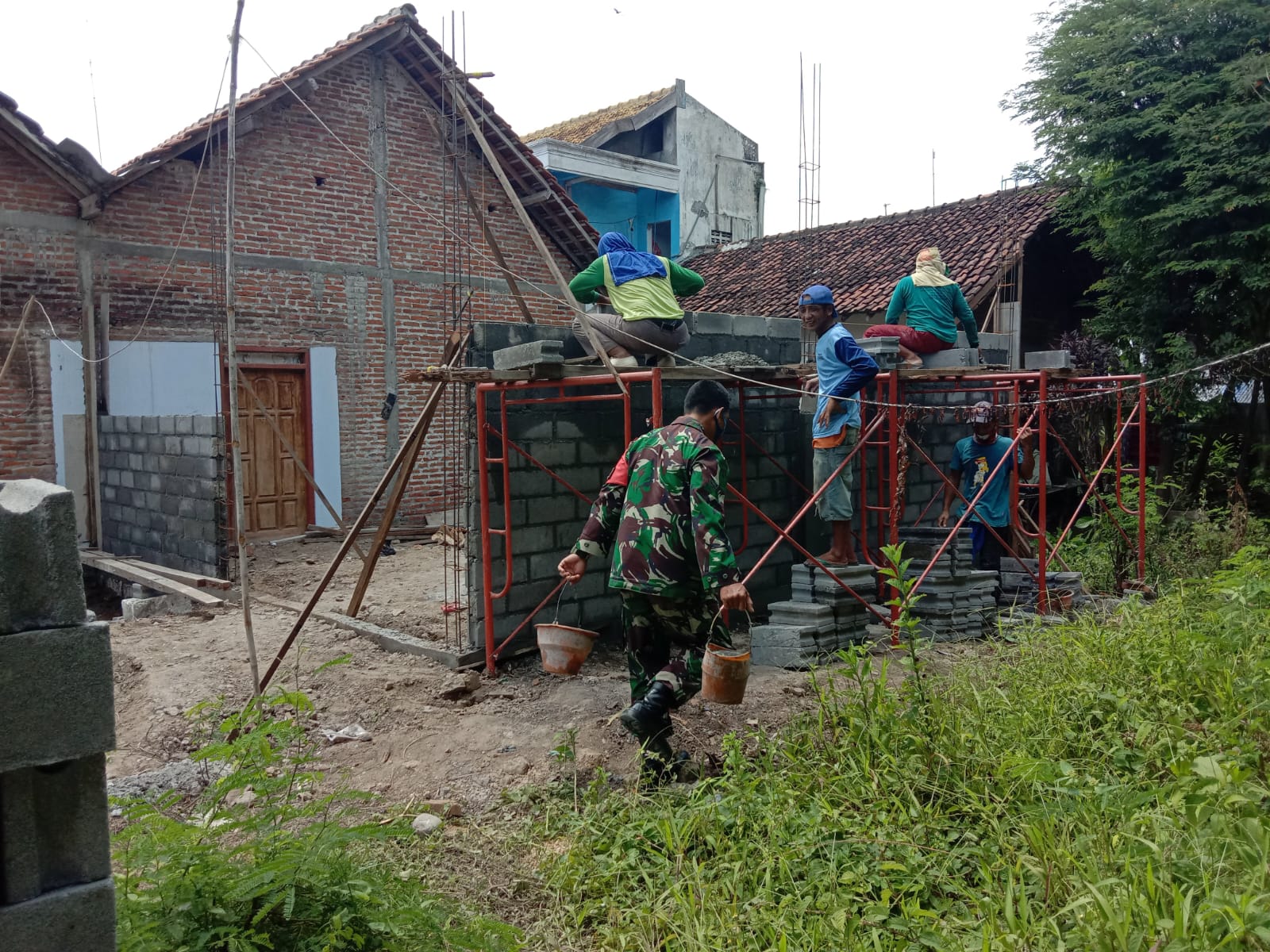 Nganjuk – Keakraban kepada warga binaan merupakan tugas pokok Babinsa, salah satunya yaitu dengan Gotong royong seperti halnya yang dilakukan Babinsa Koramil 08/Baron,Kodim 0810/Nganjuk, Sertu Susanto melaksanakan gotong royong bersama masyarakat membantu renovasi rumah warga kurang mampu di Desa Kemaduh, Kecamatan Baron, Kabupaten Nganjuk, Minggu (12/10/2025).