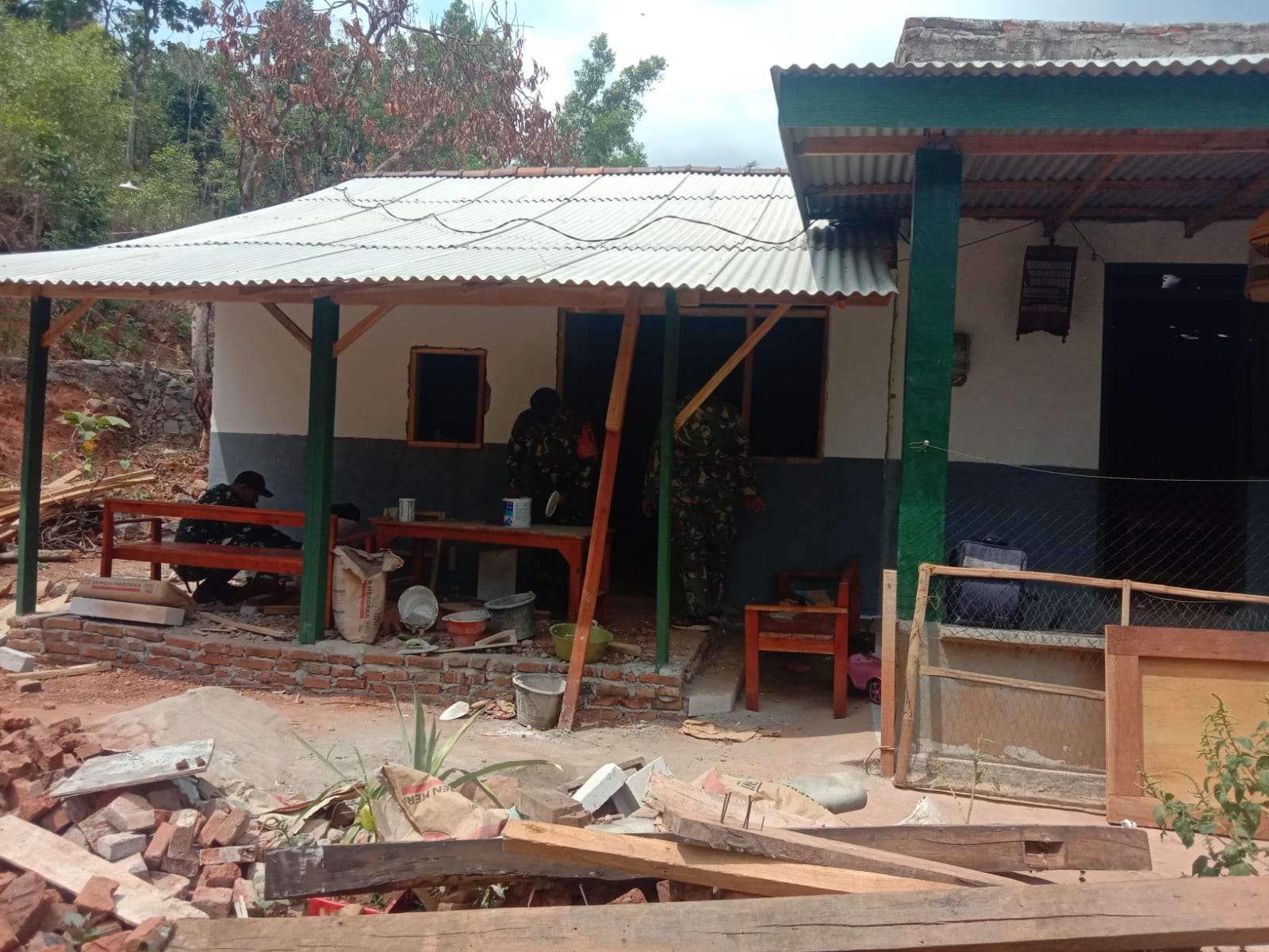 Nganjuk – Babinsa desa blongko sertu Asep Indra Gunawan koramil 0810/18 Ngetos membantu masyarakat kurang beruntung melaksanakan kerja bakti membuat rumah agar layak untuk di tempati bertempat di dusun jati Mulyo desa blongko kecamatan ngetos pada hari Sabtu tanggal 20 September 2025.