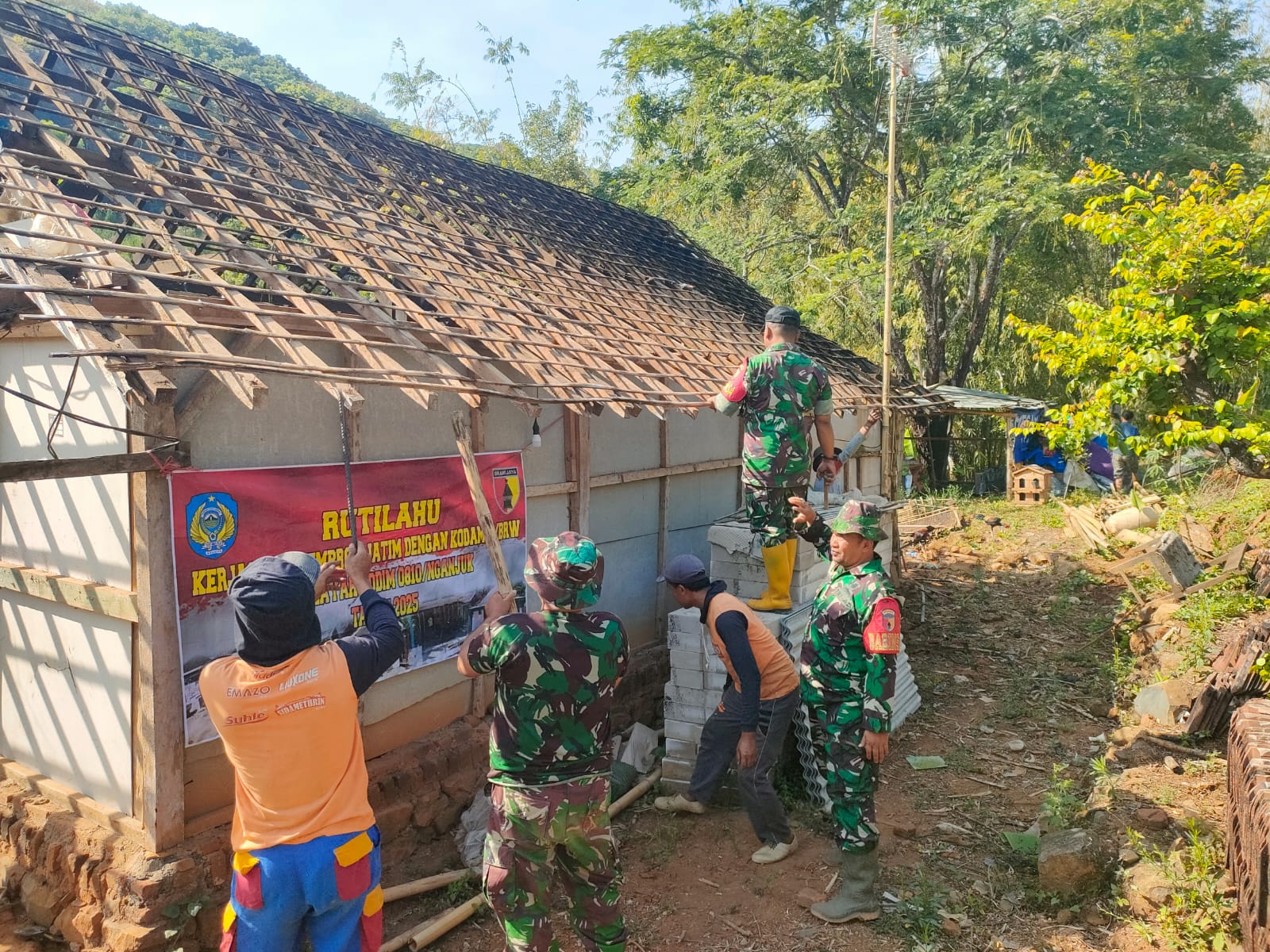 Nganjuk – Loceret- Babinsa Sertu Nyamianto anggota Koramil 0810/03 loceret turut serta dalam Pembongkaran sebuah rumah tidak layak huni (RTLH) milik Ibu Suyati RT 01 RW 02 desa Bajulan kecamatan loceret kabupaten Nganjuk.