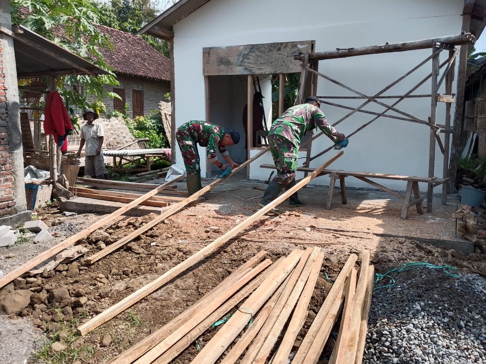Babinsa Koramil 0810/19 Jatikalen Bantu Pembangunan Rumah RTLH di Desa Pulowetan