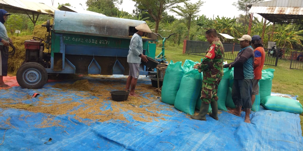 Dalam upaya mendukung ketahanan pangan nasional, Babinsa Koramil 0810/06 Kertosono melaksanakan kegiatan pendampingan serapan gabah bersama Kelompok Tani (Poktan) Binakarya PPL dan anggota Bulog di Desa Pandantoyo, Kecamatan Kertosono.