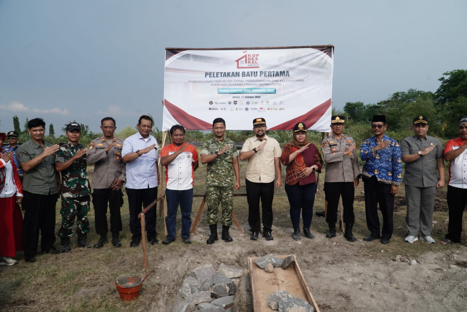 Selanjutnya, Menteri Koperasi RI Dr. Ferry Juliantono dalam sambutannya menjelaskan bahwa kegiatan peletakan batu pertama tersebut merupakan tindak lanjut dari Instruksi Presiden Nomor 9 Tahun 2025 dan Peraturan Presiden Nomor 9 Tahun 2025 tentang percepatan pembentukan Koperasi Desa/Kelurahan Merah Putih.
