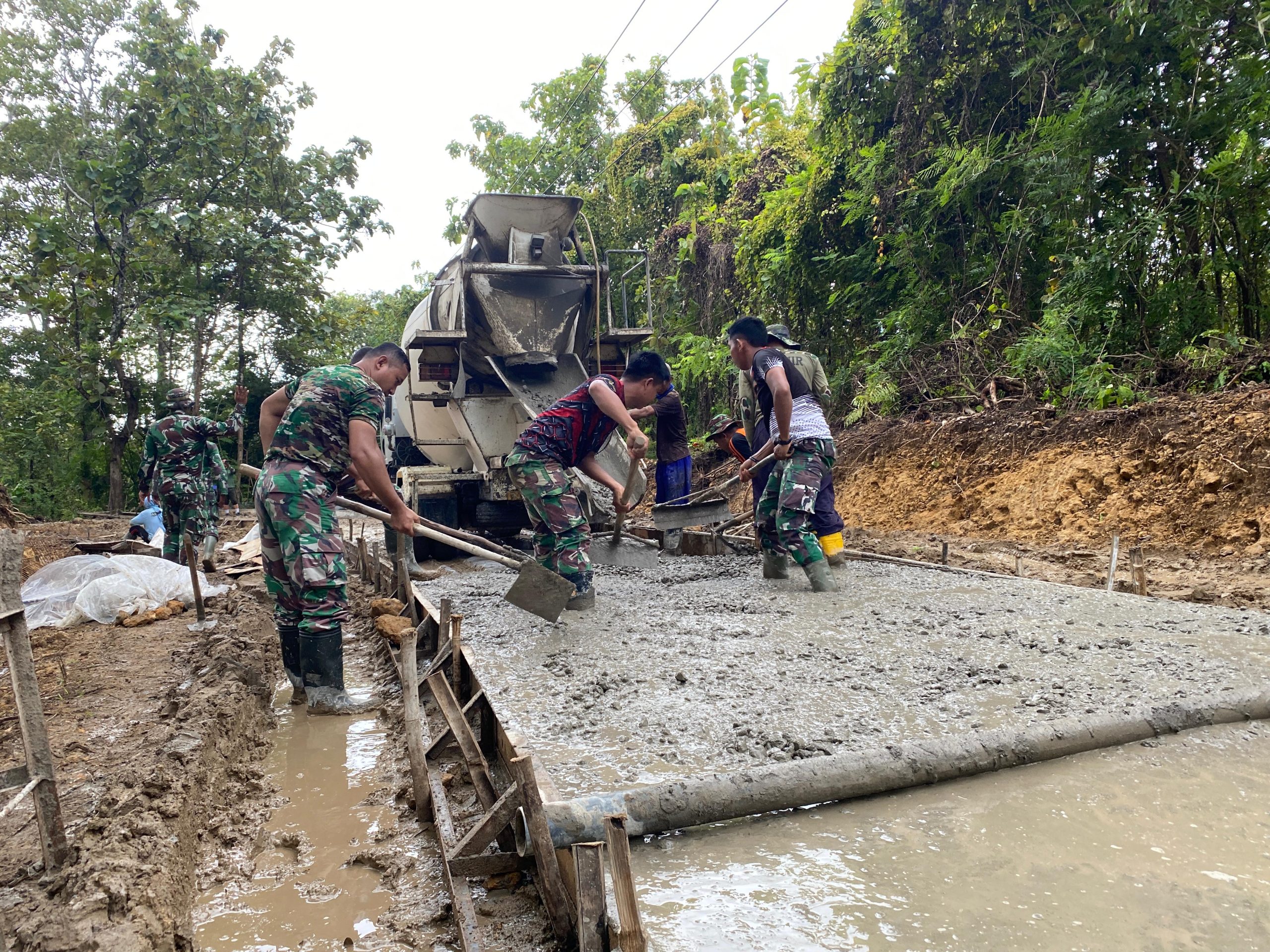 “Kita kebut untuk bisa selesai tepat waktu sebelum program TMMD ditutup, Anggota Satgas TMMD bersama warga bekerja bahu-membahu dalam melaksanakan pengecoran”, ujarnya.