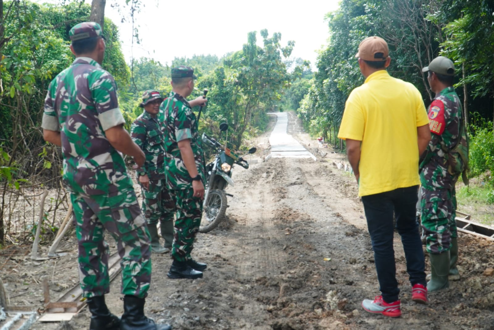 Di lokasi pembangunan jalan berkonstruksi cor beton yang akan dibangun sepanjang 1.100 meter itu, Letkol Andi Sasmito melihat langsung hasil pekerjaan yang telah dilakukan personel Satgas dibantu warga sekitar.
