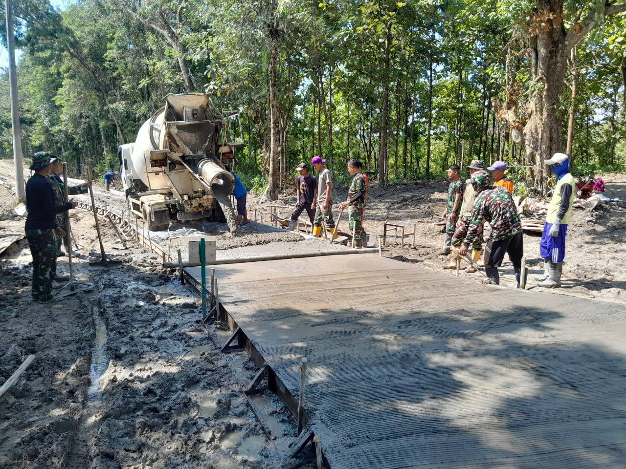 Pengecoran Jalan TMMD 124 Kodim Nganjuk Sudah Sampai titik 700 Meter.