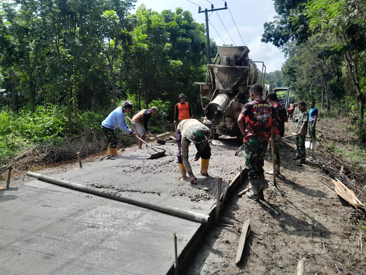 Batas waktu untuk penyelesain pengecoran Jalan kiranya pada awal bulan juni mendatang.Oleh karena itu semua tenaga di upayakan baik dari anggota satgas maupun masyarakat sekitar.