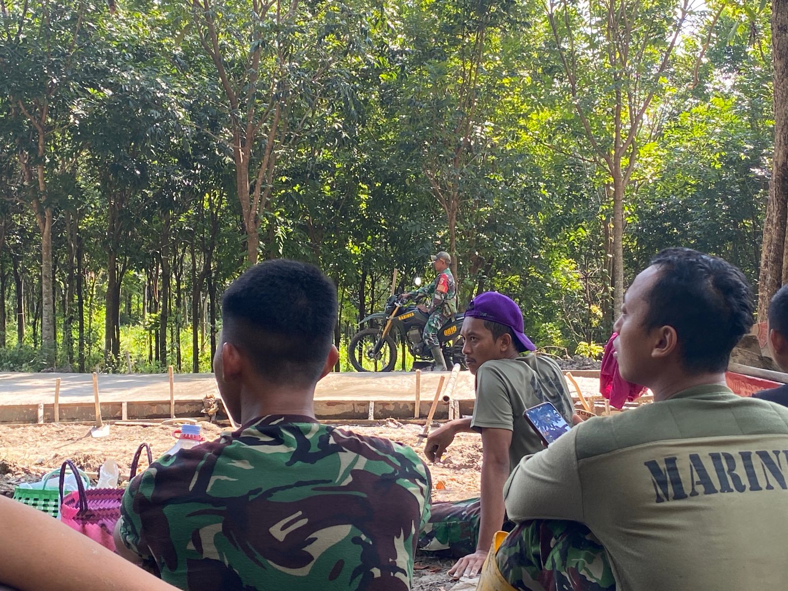 Seperti halnya saat di temui media, Sertu Sunardi tampak sedang memantau pelaksanaan pengecoran rijig beton, Salasa (20/05/25).