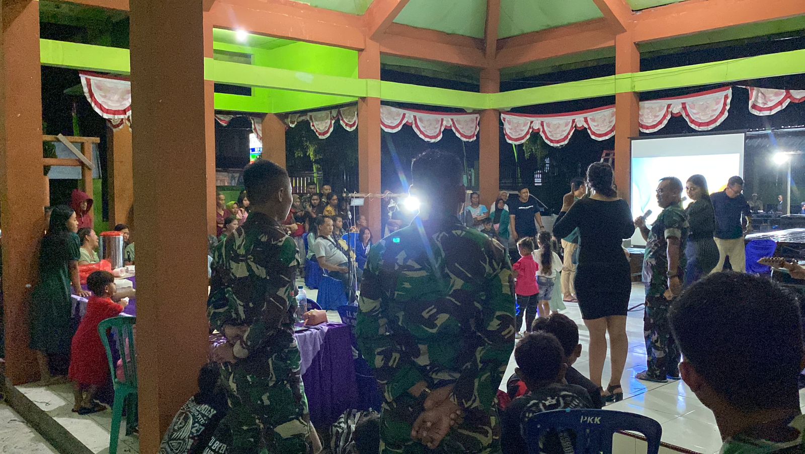 Hiburan organ tunggal tersebut mendapat sambutan positif dari warga setempat. Warga bersama Satgas TNI berbaur menikmati alunan lagu