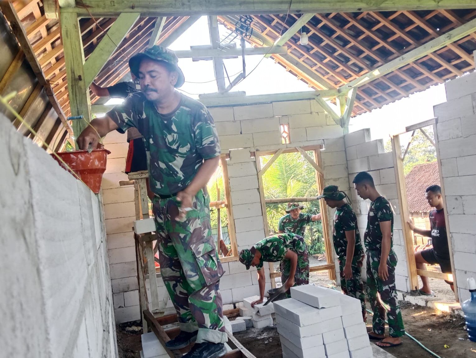 Satgas TMMD Ke 124 Kodim 0810/Nganjuk Mulai Naikkan Dinding RTLH
