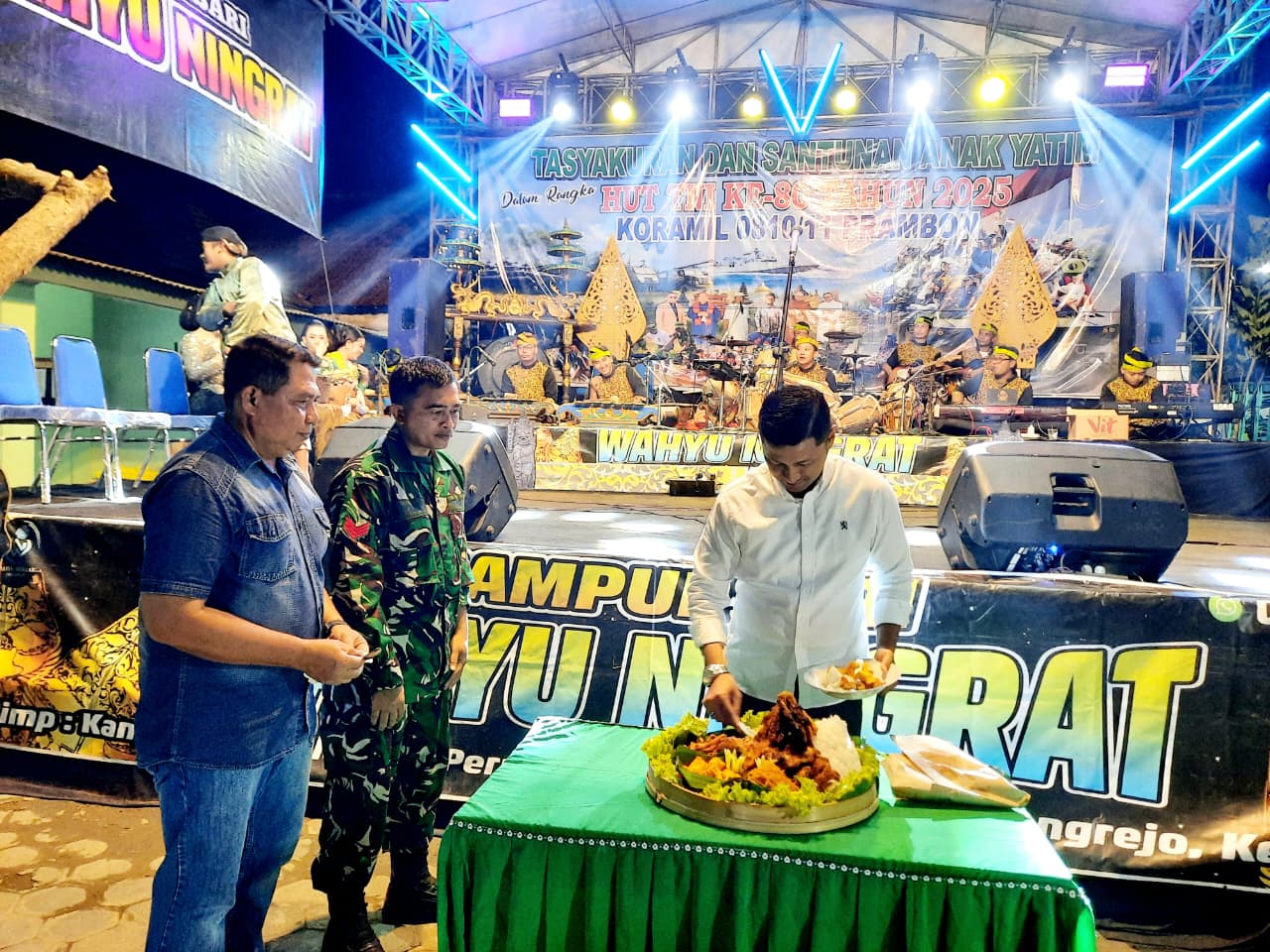 Acara yang berlangsung di Makoramil 0810/11 Prambon ini dihadiri oleh Dandim 0810/Nganjuk Letkol Arh M. Taufan Yudha Bhakti, S.I.P., S.T, anggota Koramil, Forkopimcam Prambon, tokoh agama, tokoh masyarakat, serta puluhan anak yatim dari wilayah Kecamatan Prambon.