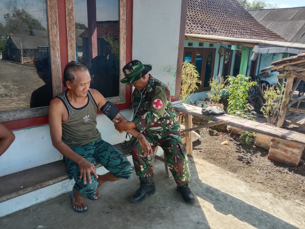 Tim Kesehata Satgas TMMD Ke – 124 Kodim 0810/Nganjuk melakukan pemeriksaan kesehatan secara door-to-door ke rumah warga, terutama bagi mereka yang kesulitan mengakses fasilitas kesehatan.