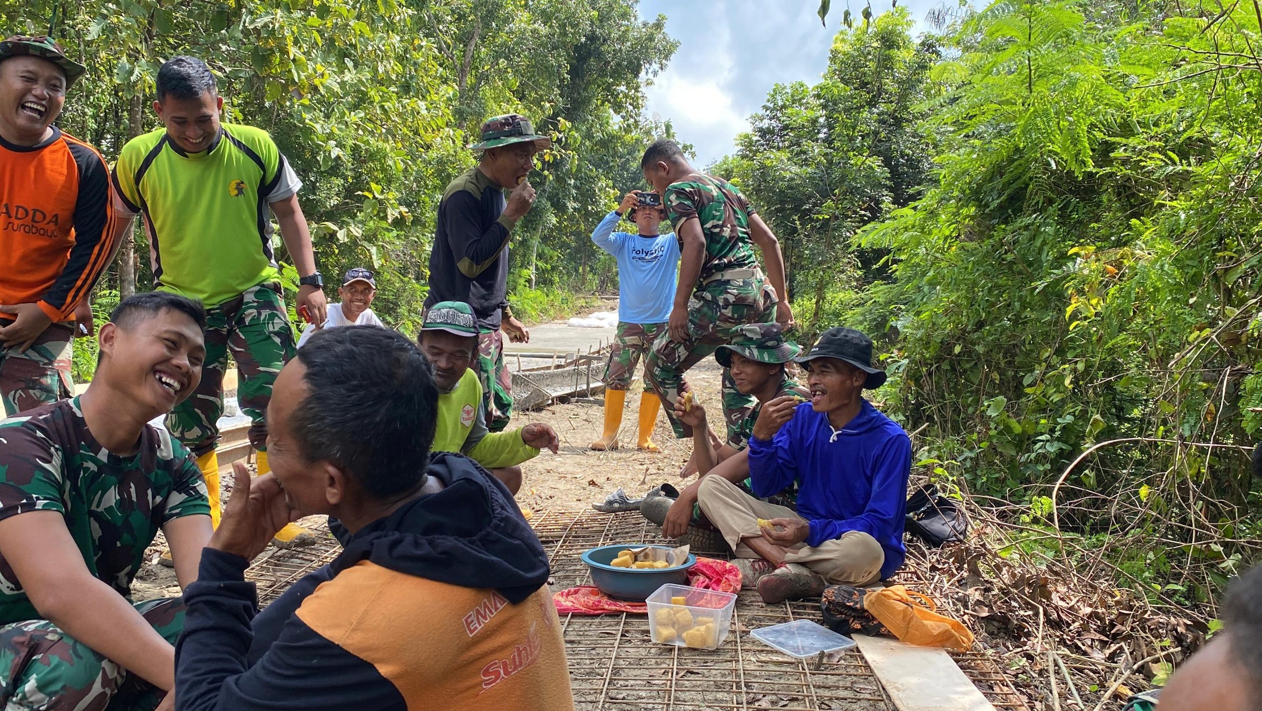 Tetapi kebersamaan juga terlihat saat istirahat dengan makanan seadanya dan bersendau gurau warga Desa sumbermiri kecamatan Lengkong. Tampak kecerian dan hangatnya jalinan persaudaraan antara warga dengan Tim satgas TMMD 124 saat duduk bersama melaksanakan istirahat makan siang, Rabu (14/05/25).