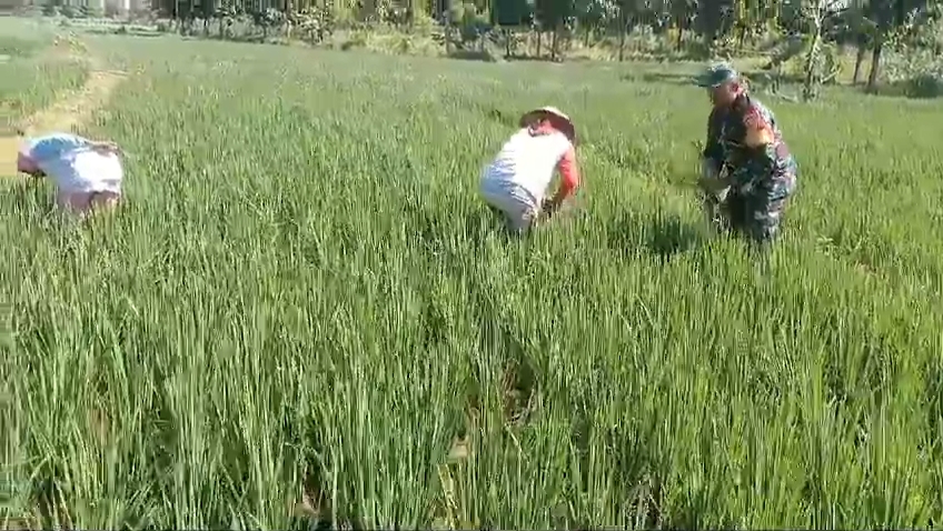 Nganjuk – Babinsa Koramil 0810/15 Rejoso Serka Sahari Babinsa Desa Dung Padang melakukan pendampingan sekaligus melakukan perawatan tanaman padi di lahan sawah milik Bpk panijan salah satu petani kampung berasal dari Desa Dung Padang kecamatan Rejoso kabupaten Nganjuk Selasa (04/06/2024).