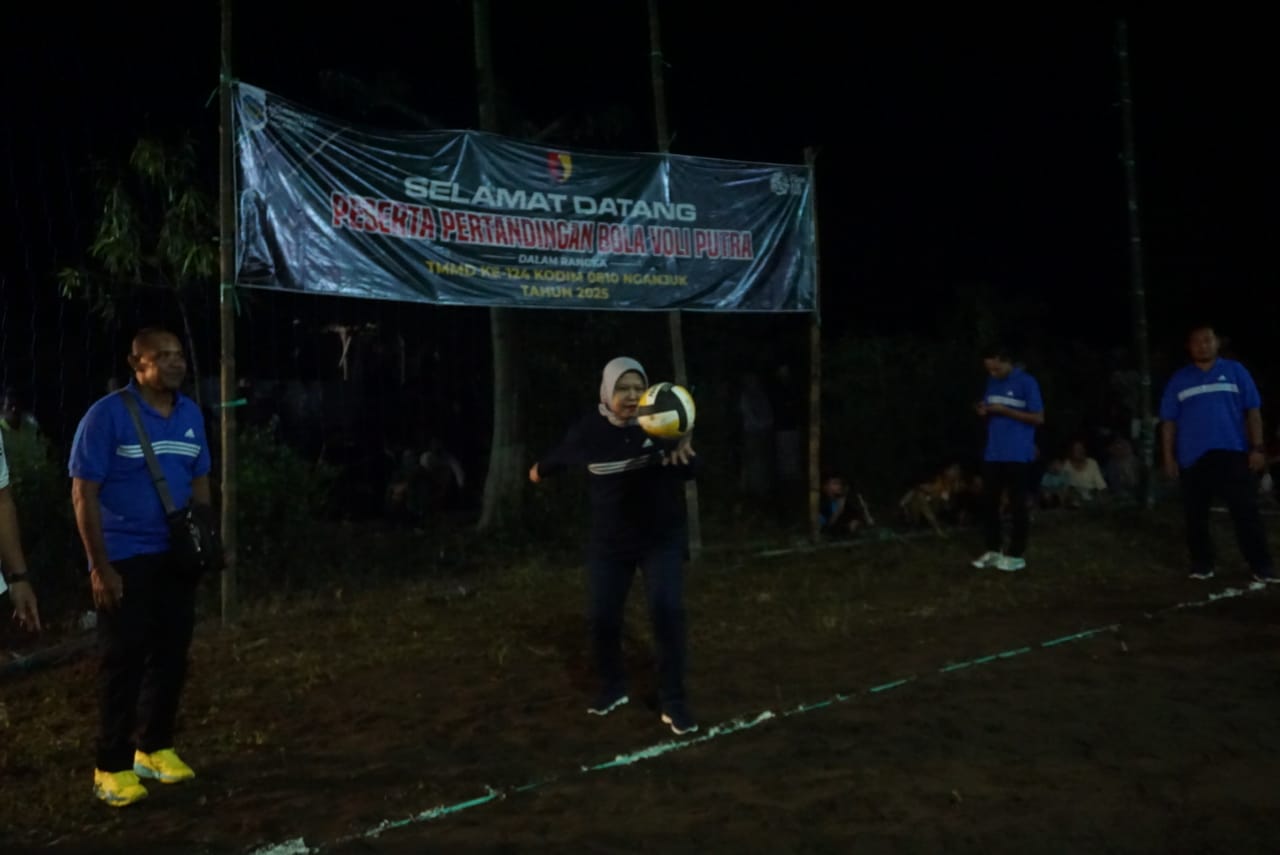 Nganjuk – Pembukaan pertandingan bola Voly dalam rangka TMMD ke-124 Kodim 0810/Nganjuk Tahun 2025 di Lapangan Voly Desa Lengkonglor Kecamatan Ngluyu Kabupaten Nganjuk.Sabtu (24/05/2025)
