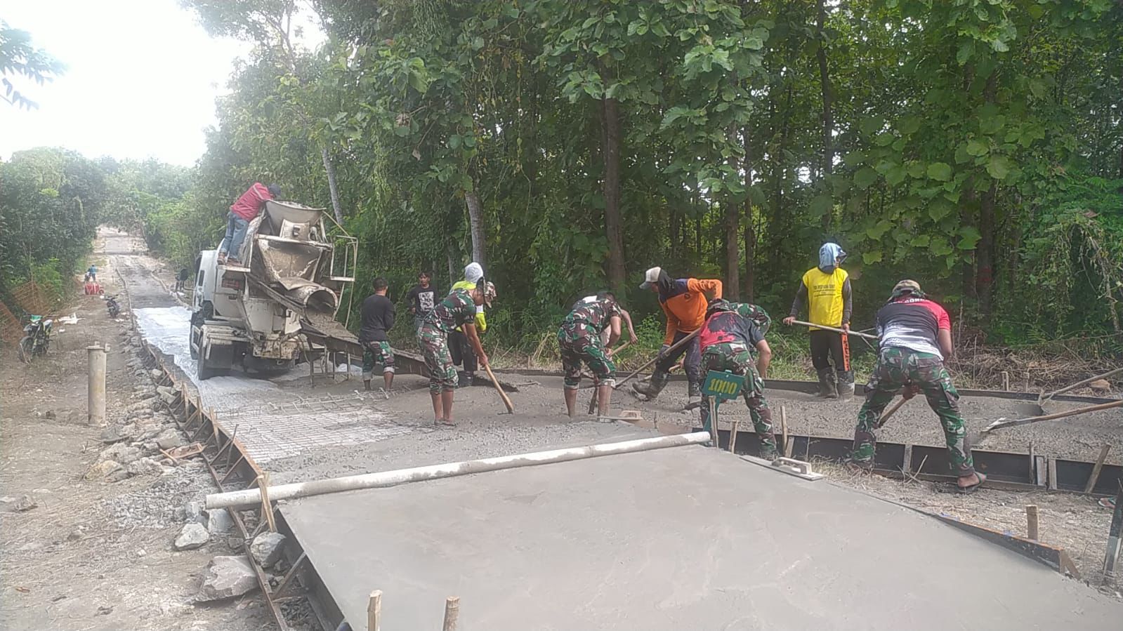 Kapten Arh Yono Periyo Perwira Pengawas TMMD Ke 124 Kodim 0810/Nganjuk menjelaskan, salah satu yang telah dilaksanakan adalah pengecoran jalan yang dikerjakan oleh personil TNI bersama masyarakat secara gotong-royong.